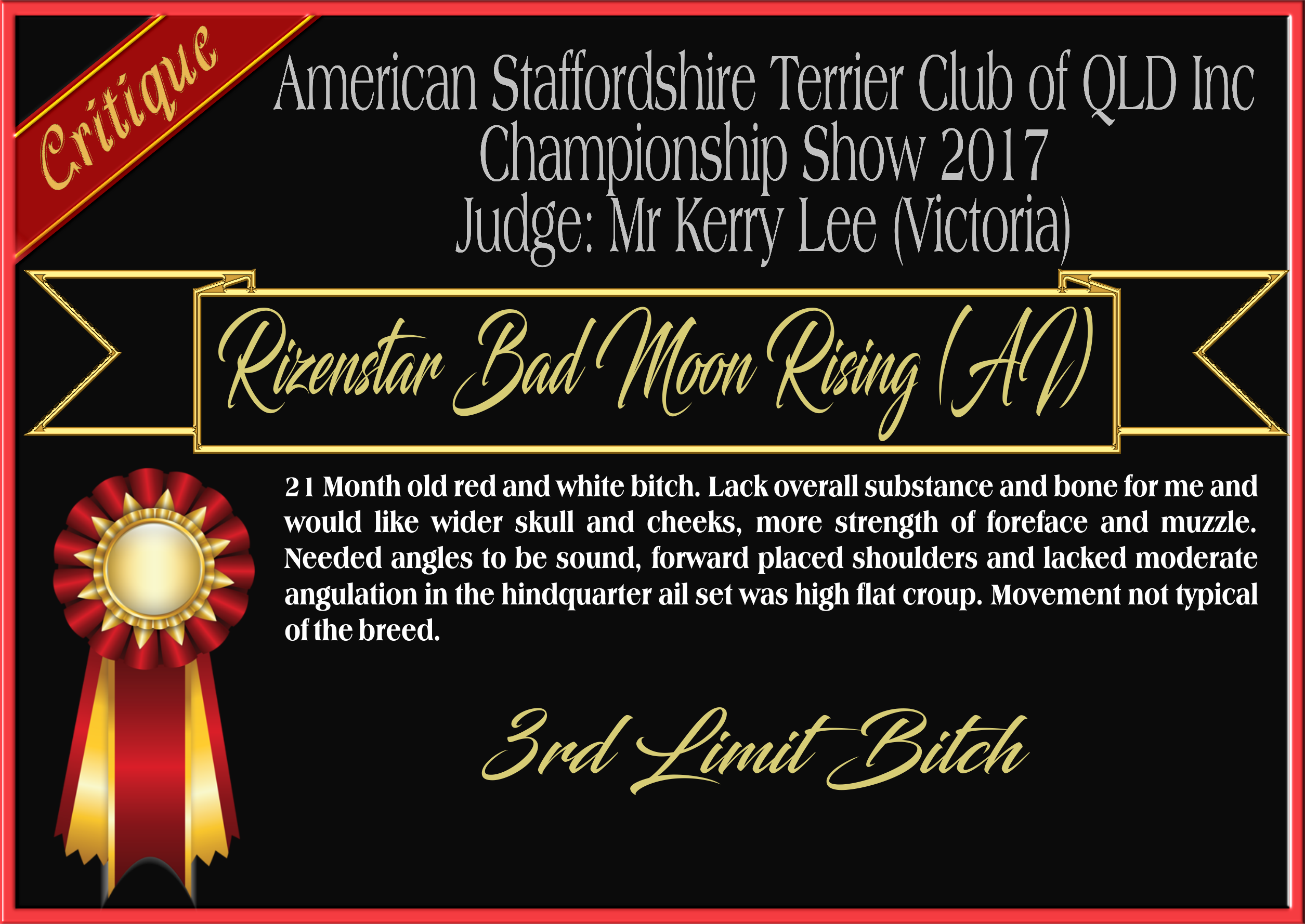 | American Staffordshire Terrier Club of QLD Championship Show - 11.08.2017 |